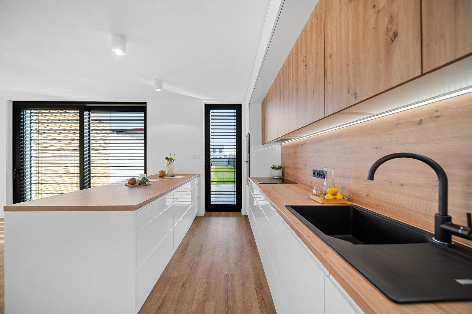 A myslelo se i na moderní technologie, co vám zjednoduší život. Venkovní žaluzie, vstupní dveře, vrata, indukční desku, troubu, tepelné čerpadlo i fotovoltaiku budete ovládat jednoduše přímo z mobilu.