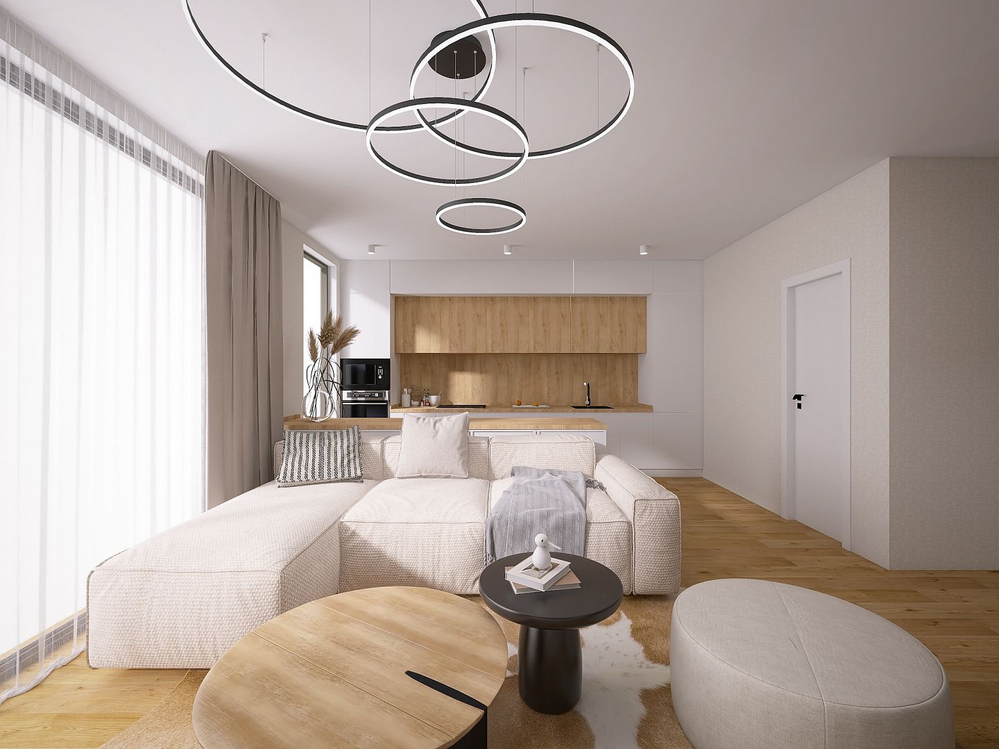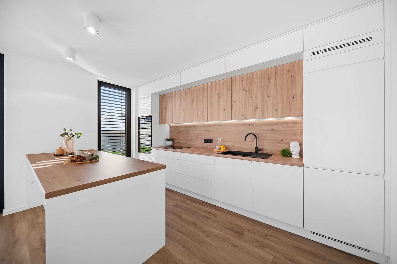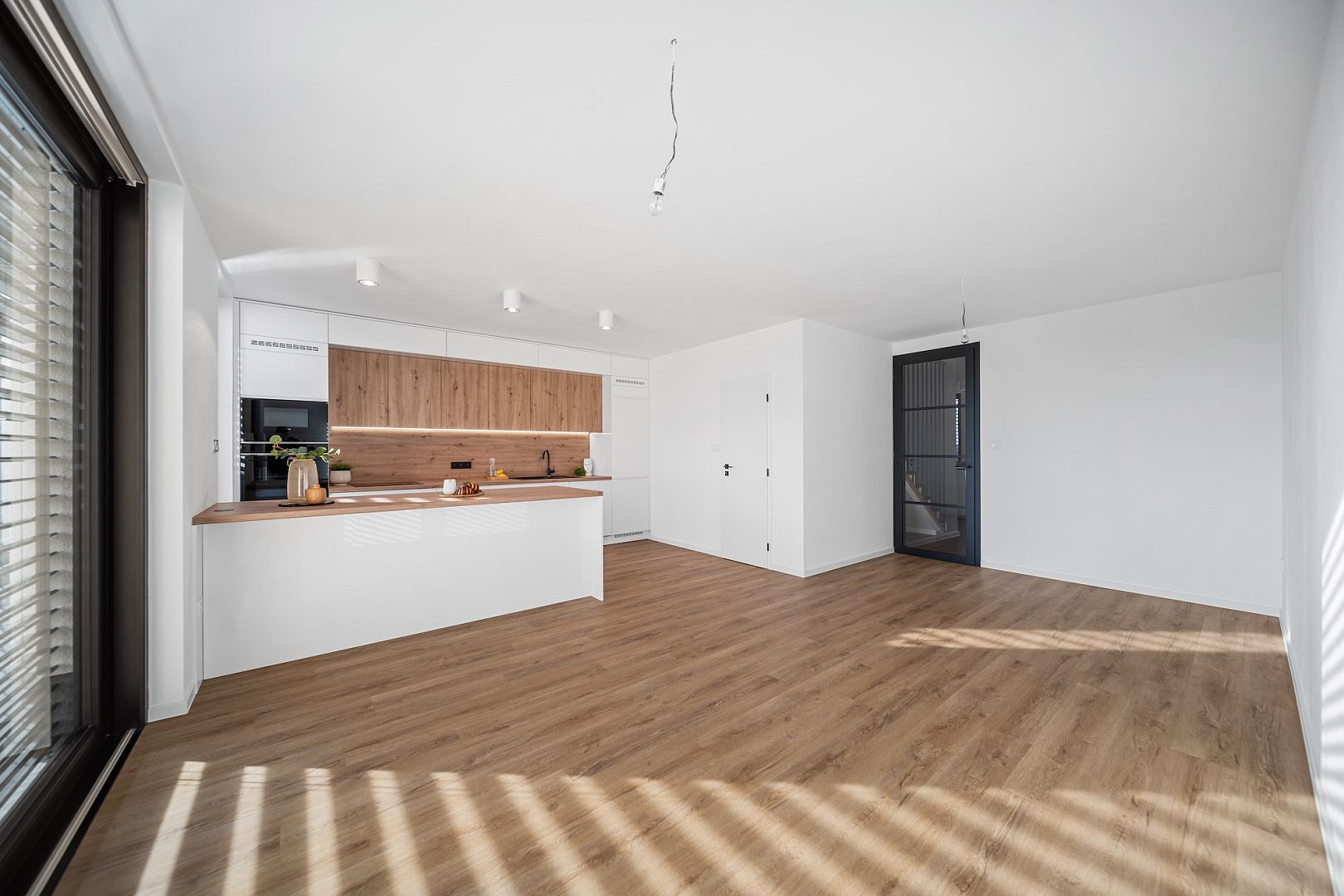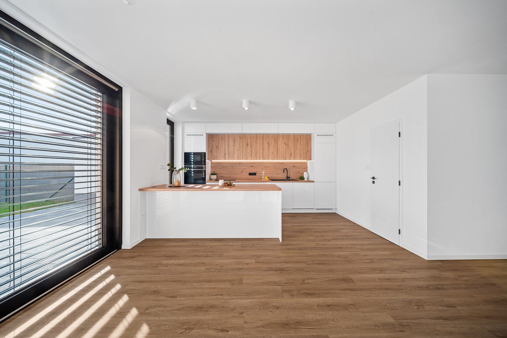 Interiér je nový, světlý a moderní – zkolaudováno bylo na konci roku 2025. Kuchyňskou linku si dokončíte podle svých představ a do obývacího pokoje se o svátcích vejdete s celou rodinou.