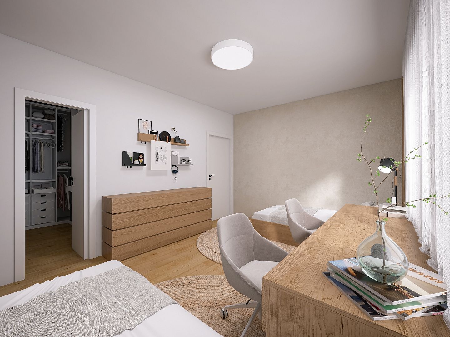 Doma budete mít vždycky pořádek. Dvě ložnice mají vlastní šatnu, na chodbě je komora a technická místnost, v kuchyni spíž a v zádveří připravený výklenek na další šatnu. Nechybí ani velká garáž, kam se vám kromě auta vejdou i kola nebo motorka.
