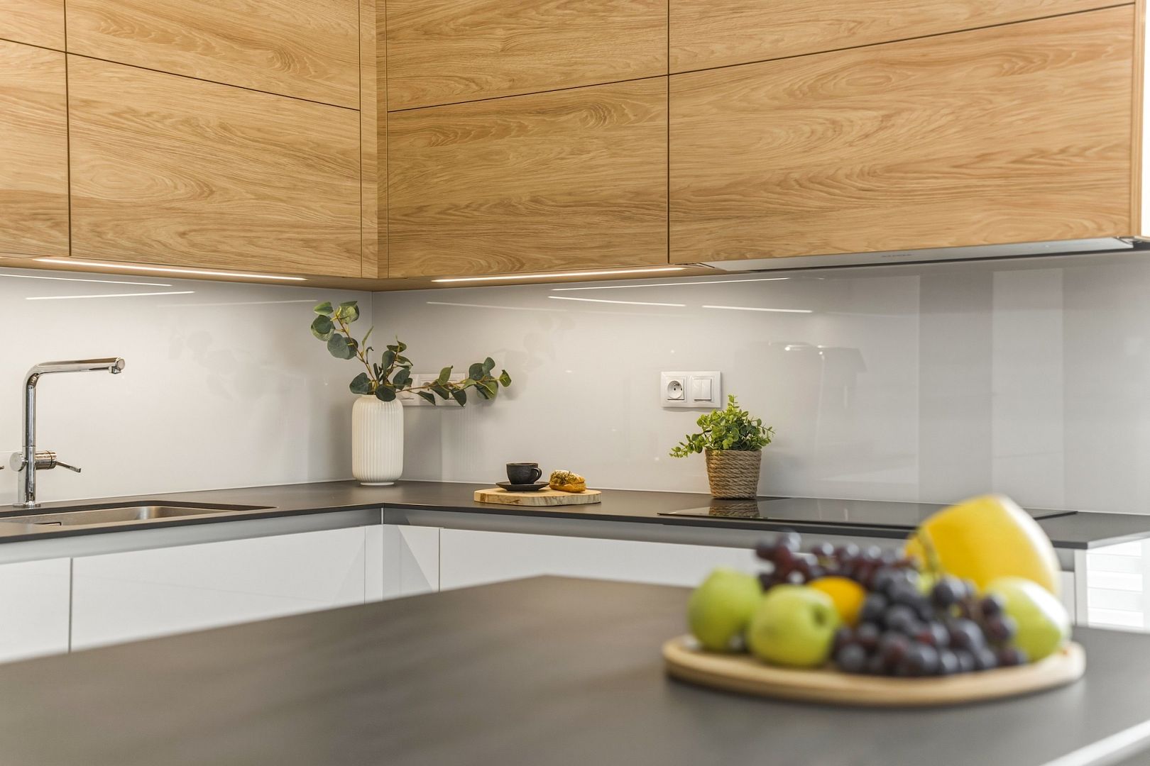 Byt si majitelé zařizovali pro sebe a je to na něm znát. Kuchyně je z odolného akrylu a pracovní deska z keramiky. Podlaha je rigidní a vhodná i pro alergiky. Nešetřilo se ani na zateplení nebo akustice – okna mají trojskla, strop zateplení navíc a stěny trojité odhlučnění.