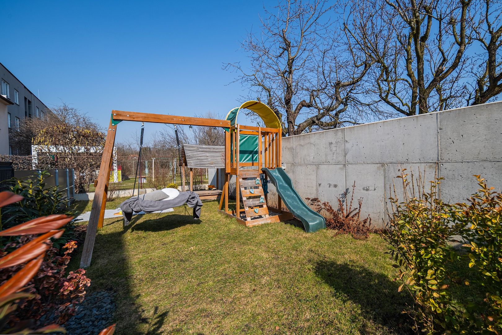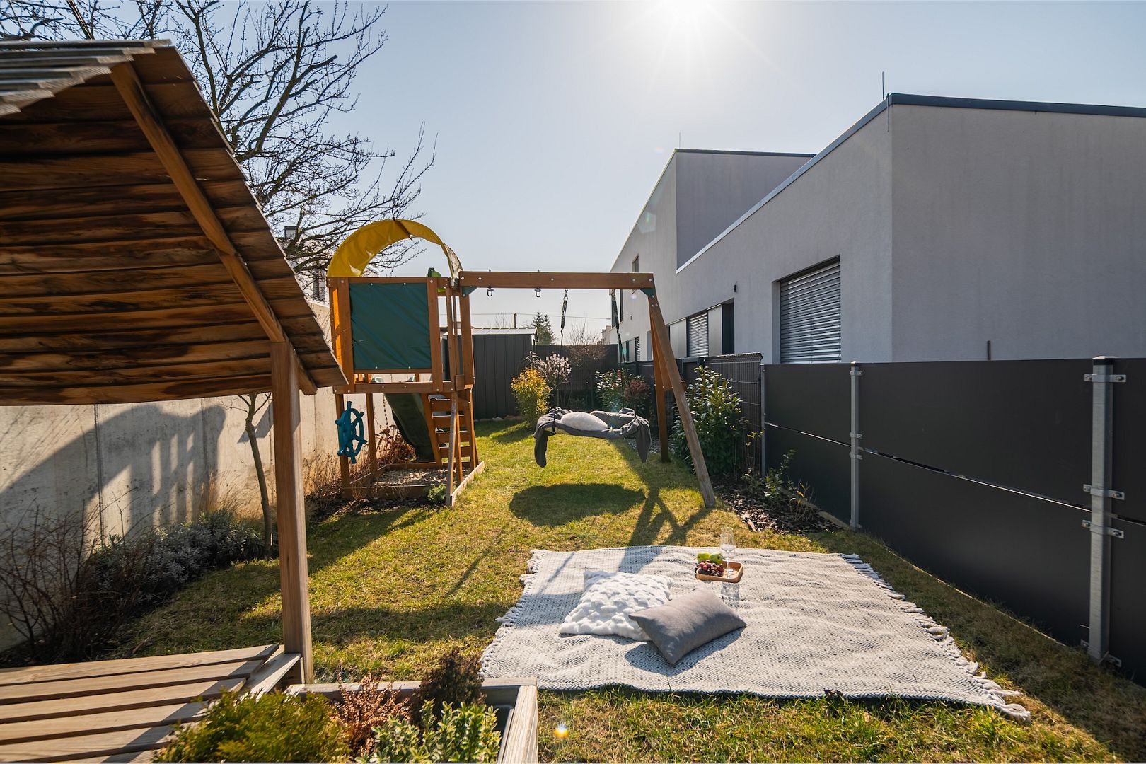 Na zahrádku to budete mít ze dveří pár kroků. Je oplocená – psa nebo děti vypustíte ven klidně bez dozoru. Je taky dost daleko od ulice na to, abyste tu měli klid na knížku nebo kávu. Zalévat budete ze studny s užitkovou vodou přímo na zahradě.