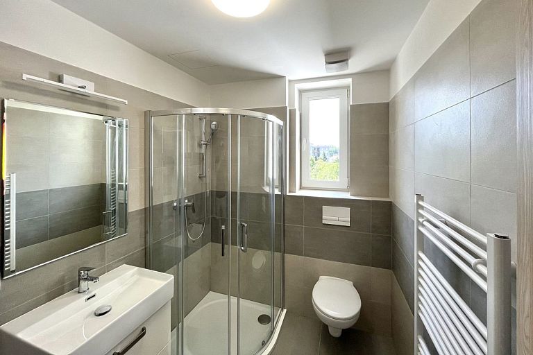 I offer for rent a brand new apartment 1+kk with a total usable area of 37 m2, on the 2nd floor of a brick house. In an accessible and safe location of family houses with public transport stop 1 minute from the house.