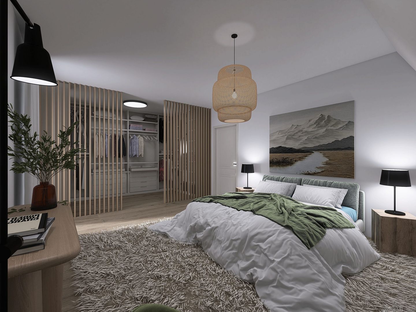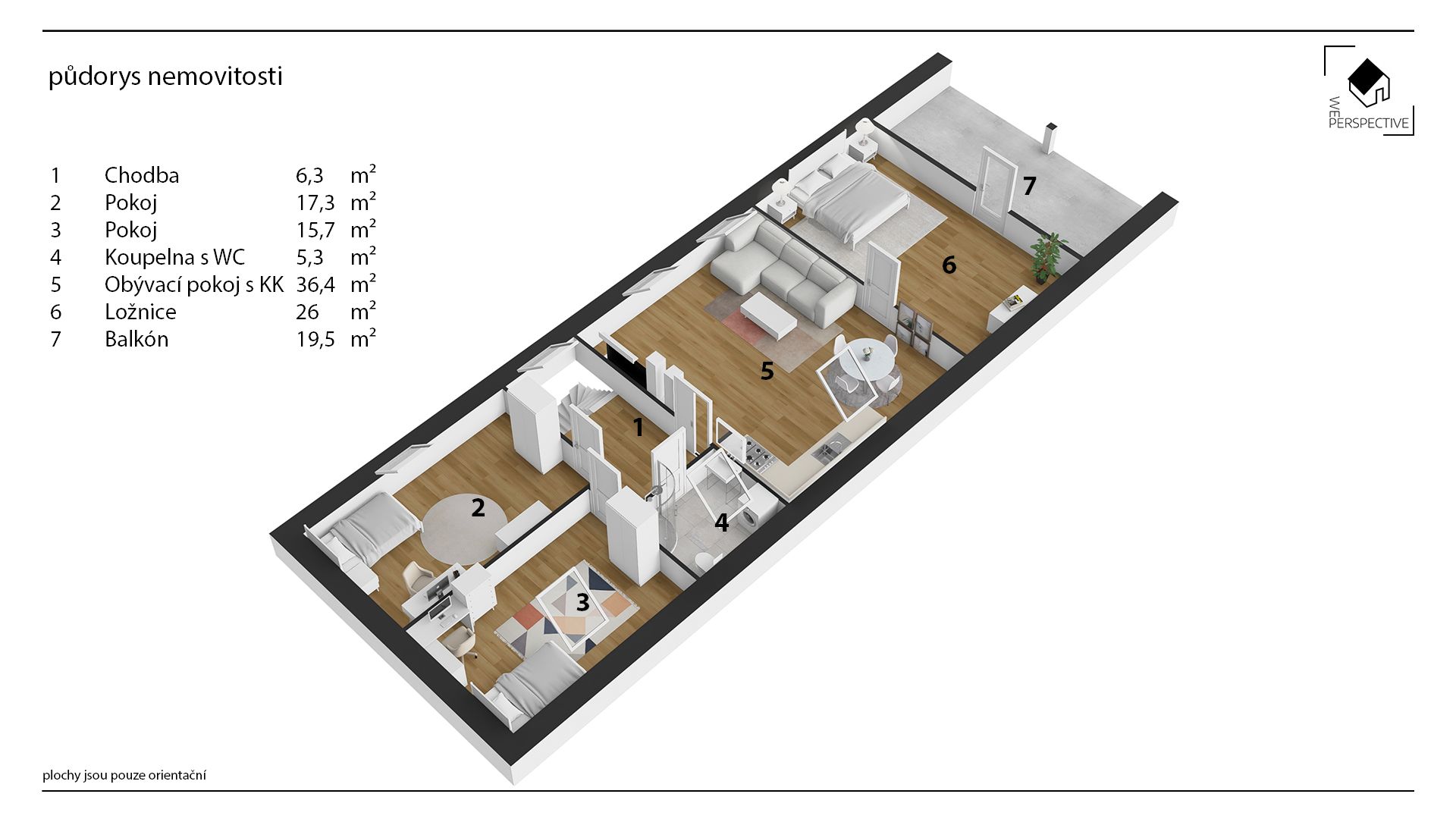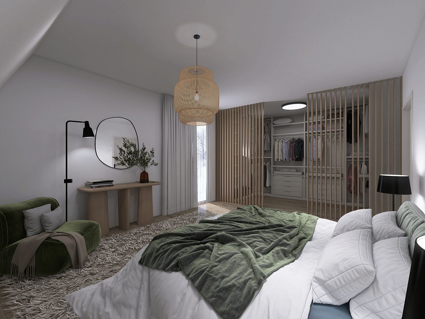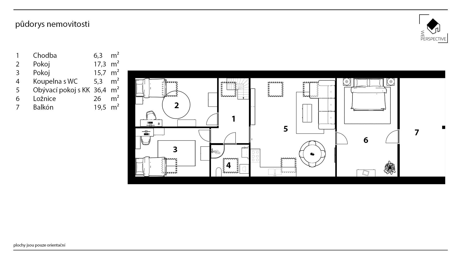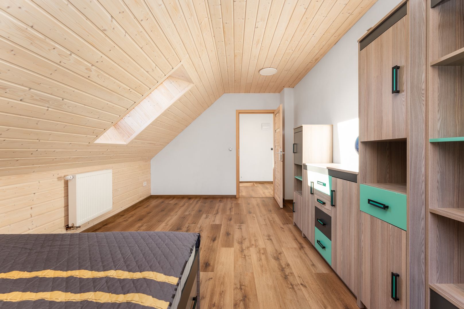 • 2nd floor 126,5 sqm - 4+k - bedroom with direct access to the terrace, 2 rooms, living room with kitchen, preparation for bathroom with toilet. The main source of heating of the entire 2nd floor is a water-air heat pump. In the living room there is also air conditioning.