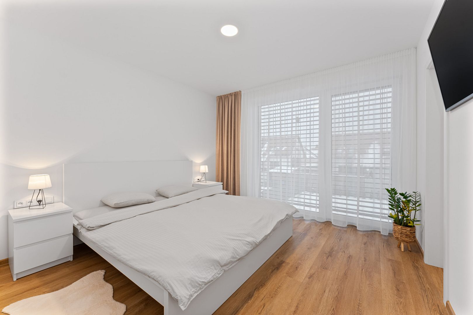 Disposition 2. N.P.: bedroom with large patio doors and its own dressing room, 2x bedroom, bathroom with bath, shower and TV + separate toilet with sink.