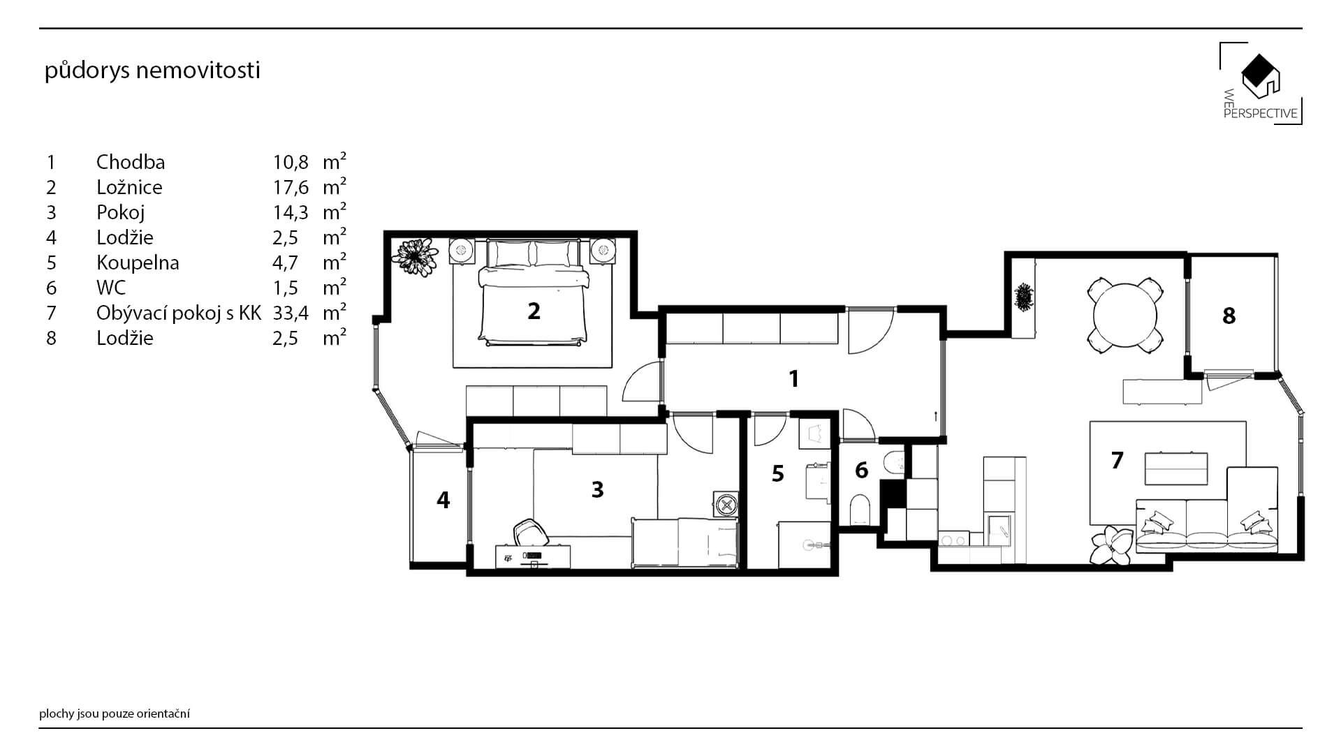 This superior apartment 3 + kk of 89 m² offers not only top design, but also maximum comfort. Thanks to ingeniously designed storage spaces, two loggias and first-class furnishings, you will enjoy comfortable living without compromise.