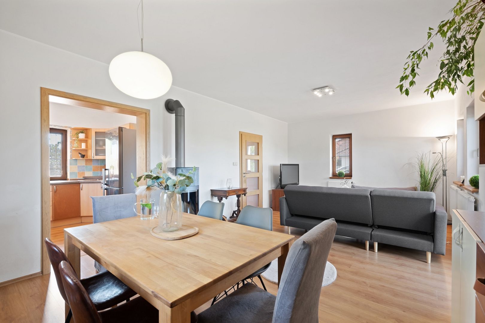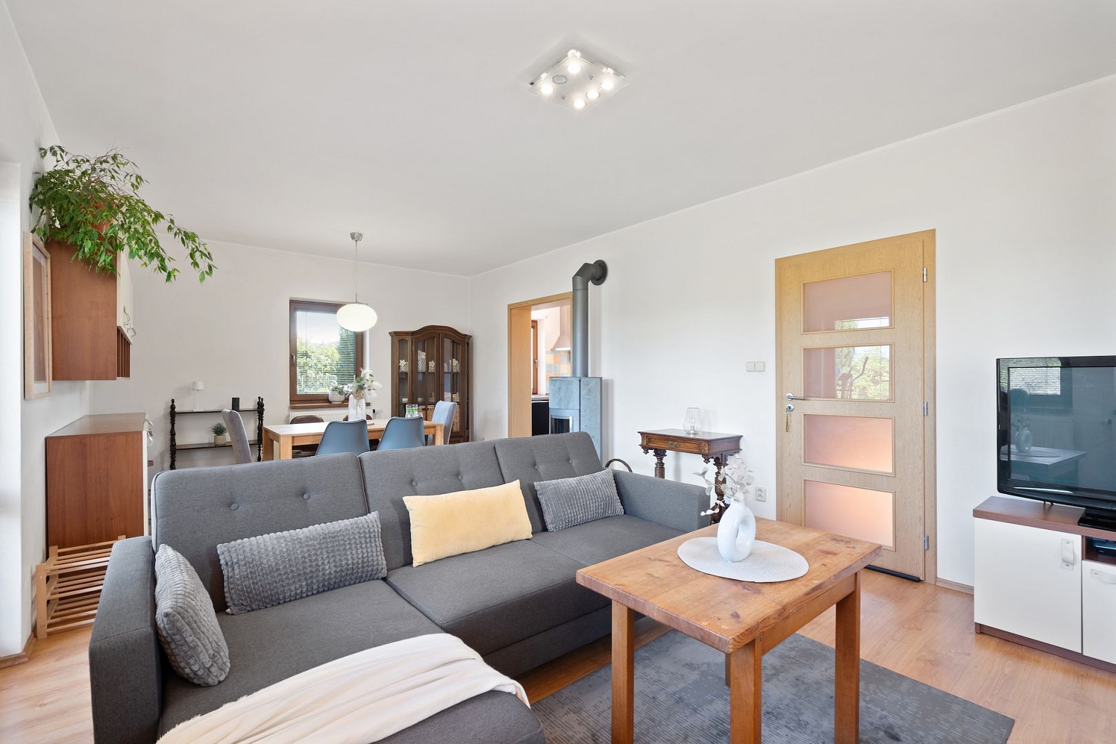 The house has a compact area of 85 m2, so you won't spend half a day cleaning. But each member of the family will have their own privacy – the kids will do their homework in the big room while you relax in the living room by the crackling stove.