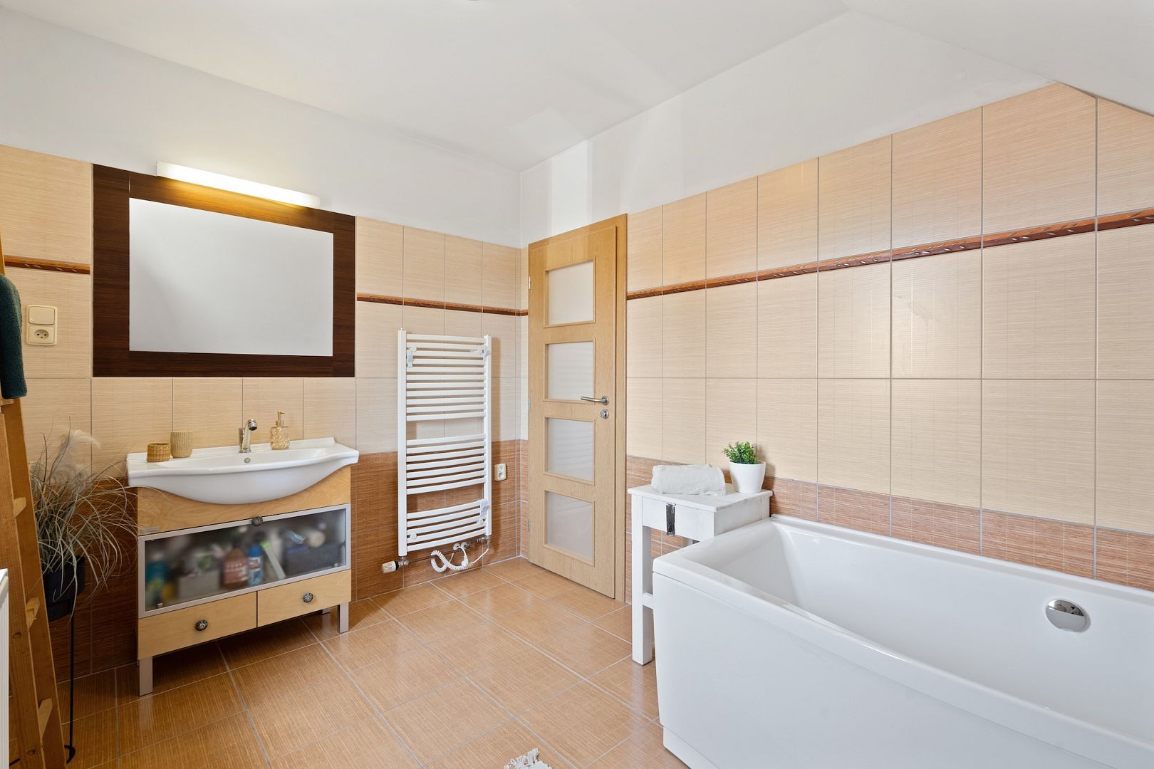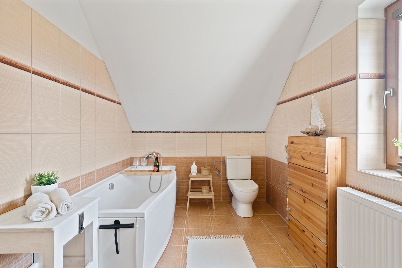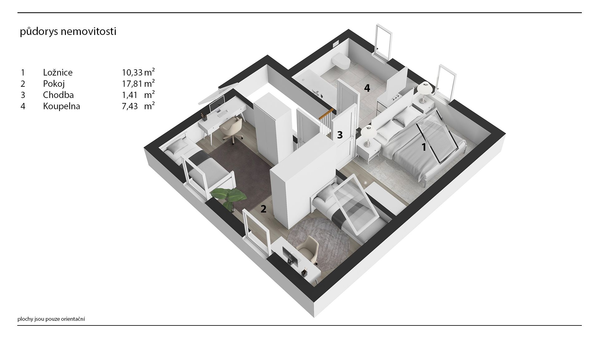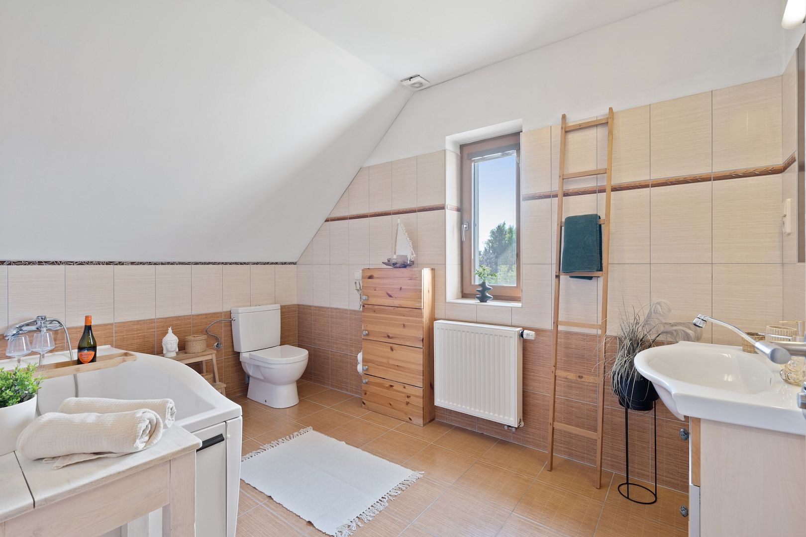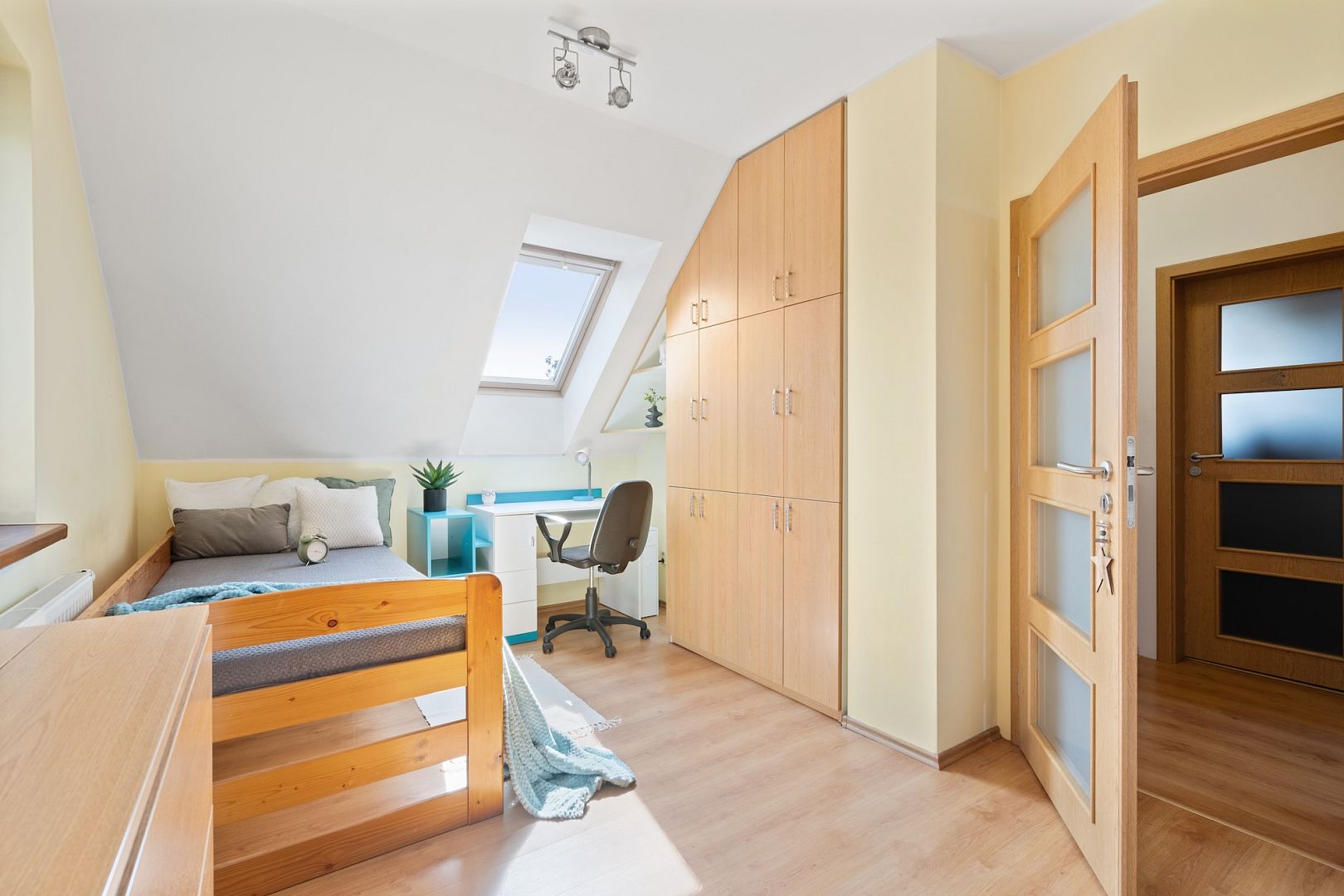The attic house has a layout of 3+1 and an attic for storing things. On the ground floor there is a living room, kitchen and toilet. A wooden staircase ascends to the first floor with two bedrooms and a bathroom with bath and toilet.