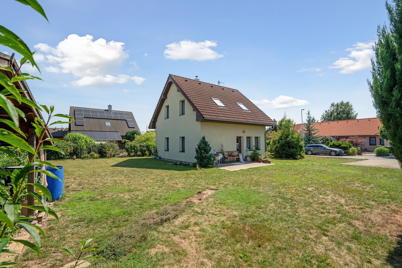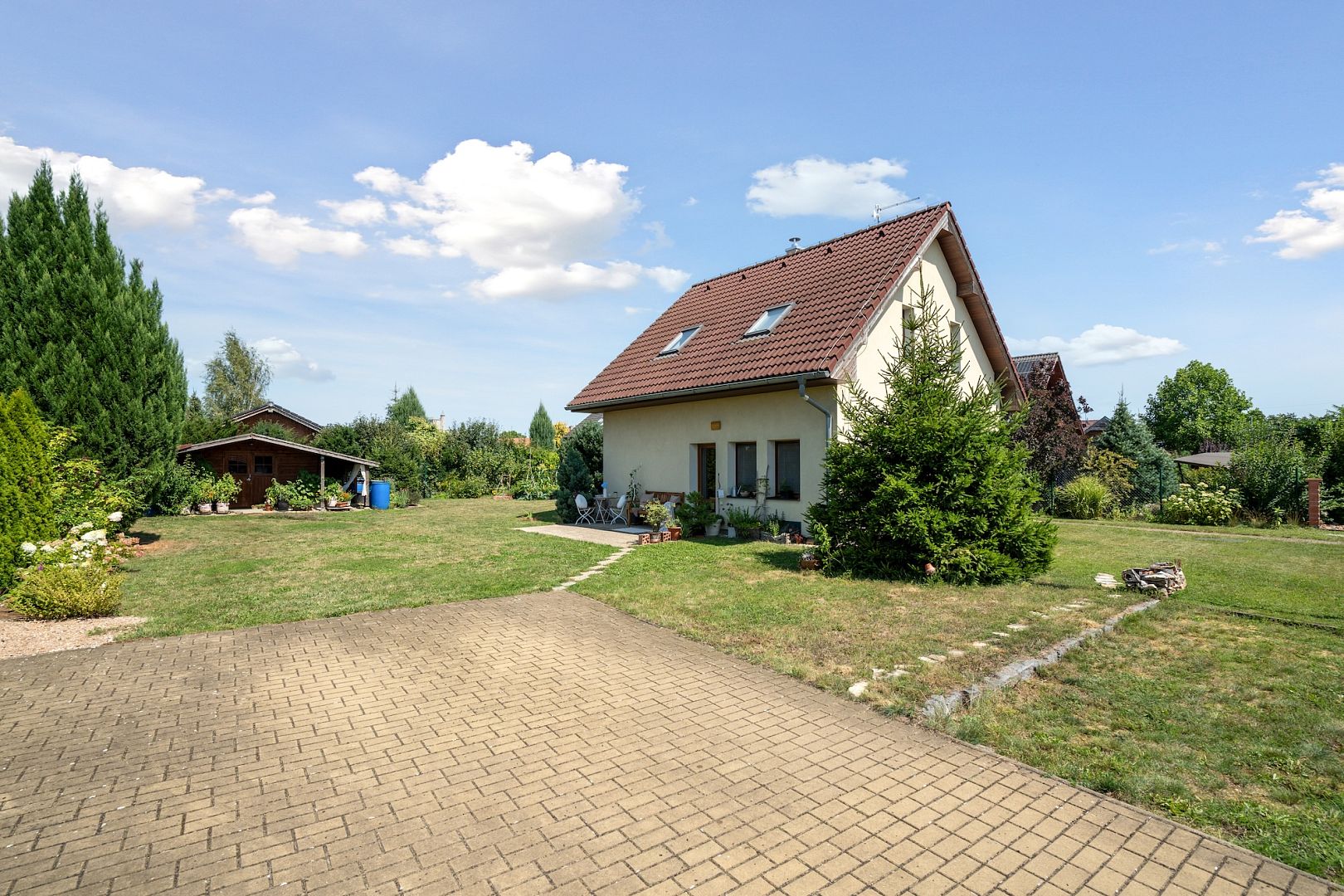 In the 753 m2 garden, you can garden, sunbathe or admire the views of the greenery from the terrace – if you cut the fence, you'll have the Kuňka in the palm of your hand, in addition to absolute tranquillity. And when you get tired of it at home, just grab your skates or get on your bike and ride out into the countryside.